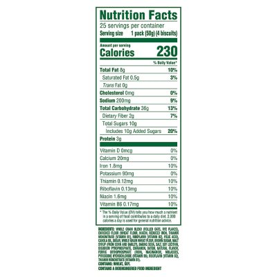Nutrition Label Belvita Breakfast Biscuits Cinnamon Brown Sugar 19g of whole grain per 50g serving-No high fructose corn syrup-No partially hydrogenated oils, UPC Code 044000043209 Manufactured by belvita ... Nutrition Label. Nutrition Facts. Serving Size 1.00 pack. Amount Per Serving. Calories 230 Calories from Fat 70 % Daily Value* Total Fat 8g. 12.3% ... belVita Breakfast Biscuits. Nutritious Sustained Energy Our belVita Soft Baked Mixed Berry Breakfast Biscuits are chewy and oh so delicious. Each wholesome biscuit is made with nutritious whole grains and tasty fruits like blueberries and raspberries. ... Nutrition Facts . Mixed Berry Nutrition Facts. Provides 4 hours of nutritious steady energy. Back *Contains 7g total fat per serving. Amount Per ... Product Review: Belvita | Wellness for Womanhood 1 serving is 1 package, or 4 biscuits. Sometimes labels can be a bit tricky because the label will boast about how much of X nutrient it has per serving…but then the serving size is unrealistic to the amount that most people would actually eat (usually on the smaller side!). My favorite example is with Oreos. The serving size is three cookies.