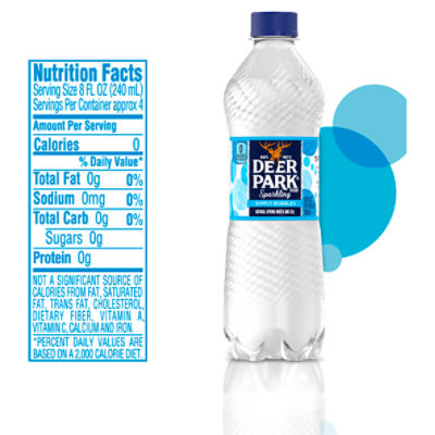 Deer Park Sparkling Natural Spring Water - Giant Food Deer Park Sparkling Natural Spring Water 1 ltr btl See Best Price Quick Facts Kosher Nutrition 0 Calories -- Sat Fat 0mg Sodium -- Sugars Nutrition Facts approx 4 servings per container Serving Size 12.0 fl oz Amount per serving Calories 0 % Daily Value* Total Fat 0g 0 Trans Fat 0g Sodium 0mg 0 Total Carbohydrate 0g 0 Dietary Fiber 0g 0 Protein 0g