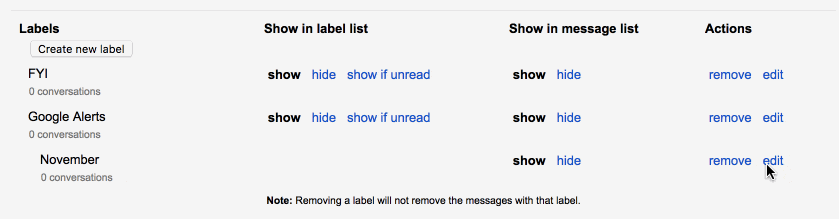 How to Use Gmail Labels (Step-by-Step Guide w/ Screenshots) Here, you can rename the label or click the checkbox next to "Nest label under:" to nest this label under another label. Step 4 Once you're done making edits, click Save. Step 5 If you want to delete the selected label, click on Remove label. D. How to Show or Hide Labels on the Gmail Web App