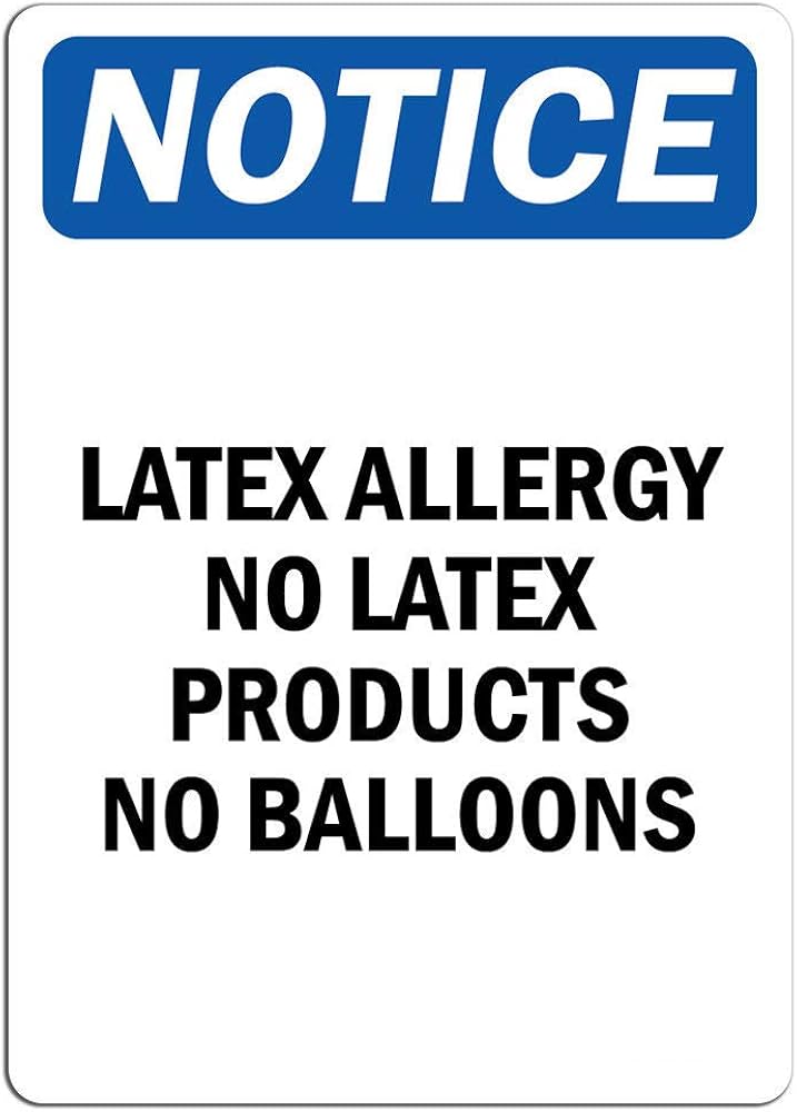 Notice - Latex Allergy No Latex Products No Balloons Sign | Label Decal Sticker Retail Store Sign Sticks to Any Surface 8"